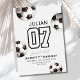 Comece a comemorar com este ousado e moderno convite de aniversário no tema do futebol! Apresentando um design minimalista com bolas de futebol preto-e-branco e um número de camisa desportiva destacada, este convite é perfeito para o aniversário da sua jovem estrela de futebol. Totalmente editável para personalizar com seu nome, idade e detalhes de festas. Excelente para jogos de futebol no quintal, festas de esporte no interior ou comemorações em equipe.