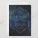 Este convite de aniversário de galáxia aérea é perfeito para uma pessoa moderna e caprichosa. A design apresenta uma galáxia azul-marinho escura com estrelas e uma estrutura geométrica dourada.