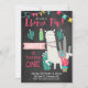 Raparigas Chalkboard Llama Diversão de Aniversário Convite à apresentação de diversão de uma garota bonita, lama de chalkboard, apresentando lama, cacto, bandeiras de bunda e faixa rosa. Esta é uma maneira bonita e colorida de convidar suas meninas convidados para a festa de aniversário dela.