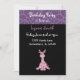 Um design legal com uma borda roxa com um padrão de pele de girafa. Uma girafa doce encarada a rosa, numa posição sentada. Personalize com todas as informações de festa de aniversário, conforme desejado.