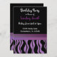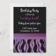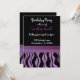 Um fundo preto acentuado por uma borda de impressão zebra roxa e preta com uma banda de roxo em diferentes tons. Personalize com todas as informações de aniversário conforme desejado.