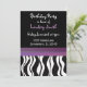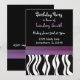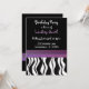 Um fundo preto acentuado por uma borda de impressão zebra branca e preta com uma banda de roxo com bordas sombreadas. Personalize com todas as informações de aniversário conforme desejado.