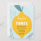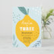 Convite de aniversário divertido e moderno, com tema limão, com limões aquosos em um fundo divertido de abstrato aqua. Personalize com o seu texto.