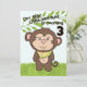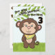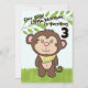 Este é um convite de festas de macaco giro para bobo pequeno. Convide a família e os amigos com este belo convite. Todo texto é editável. A frente lê: Nosso Pequeno Macaco Bobo está virando 3 Na parte de trás você adicionará todos os detalhes de sua festa. Tome um BLAST no BASH!