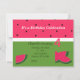 Um design doce e fresco com fundo de melancia cor-de-rosa com pontos pretos e uma borda verde. Fatias de melancia deliciosa o acendem. Personalize com todas as informações de aniversário conforme desejado.