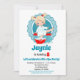 O convite para o aniversário desta rapariga apresenta uma adorável menina loira a mergulhar os pés em água pedicura com bolhas por toda a parte. Turquesa, vermelha e branca.
