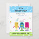 Um design bonitinho com três pequenos monstros engraçados coloridos com bordas de bolinhas em cores divertidas também!