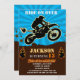 Convite de aniversário da Dirtbike, a festa Motocross convida a festa de aniversário Boy. Chamada de tema "Motocross" azul e marrom para festa de aniversário de menino que apresenta menino em moto. Vá em frente e simplesmente edite este modelo fácil de usar no menu Personalização.