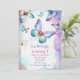 Uma bela subliminação, vibrante convite de aniversário de borboletas para meninas.