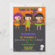 Concurso de aniversário de Halloween Trick ou Treat Happy Halloween convite para crianças. Este cartão de aniversário de bonecas Voodoo é uma forma excelente de anunciar o aniversário do Halloween. Este convite brilhante e colorido apresenta a casa assombrada, três bonecas vodu e dois pequenos gostinhos. Você pode personalizar facilmente todos os detalhes da parte com o menu de personalização para torná-lo especial.