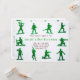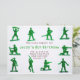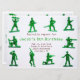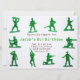 Garotos bonitos convidam perfeito para uma festa temática militar. Tem pequenos homens verdes do exército ao redor da fronteira. Você personaliza o texto no centro na frente e atrás.