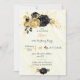 Convite de aniversário para ouro e flores pretas