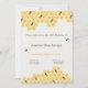 Um convite de aniversário com um padrão de abelha em favos de mel em cinzas de cima e de baixo e personalizáveis, textos amarelos e castanhos: perfeito para organizar uma festa de aniversário para um amigo ou membro da sua família!