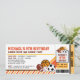 Venha chutar um pouco de diversão! Celebre seu aniversário com nosso Convite de festas de Esporte. Design apresenta basquete, beisebol, rugby, futebol americano e bolas de futebol em cima de listras laranja nas formas de ingresso com admitir um texto no fundo. Estes convites para bilhetes desportivos são perfeitos para a sua festa de aniversário temática desportiva, a sua primeira festa de aniversário desportiva ou os seus convites para bilhetes para eventos desportivos.