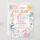 Crie um impacto com este vibrante convite de aniversário de festa de piscina tropical, perfeito para celebrações de verão! Com ilustrações coloridas de palmeiras, flamingos, picolés, óculos de sol e bolas de praia, este design alegre define o tom para um dia cheio de diversão. Ideal para aniversários de crianças, combina elementos tropicais divertidos com um layout festivo que os convidados vão adorar. Personalize com os detalhes da sua festa para criar um convite único que é ao mesmo tempo elegante e memorável.