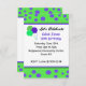 Um divertido convite de aniversário com cores brilhantes de verde e azul. Três balões soam a esquina. As bordas são verdes com pontos azuis. Personalize com todas as informações de festa de aniversário, conforme desejado.
