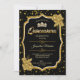 Convite de Aniversário para Quinceañera Branca, Dourada e Preta. Design com falso brilho dourado. Perfeito para uma celebração elegante e glamourosa. A fonte da quinceañera está embutida com diamantes.