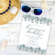 Flores azuis poeirentas criam bordas de cima e de baixo neste elegante convite de aniversário. A caligrafia clássica adiciona um belo toque. Este item é parte da coleção floral de Azul Dusty.