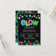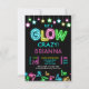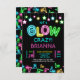 Convite de festas brilhante, néon brilha no convite para o aniversário de adolescentes.