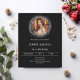 Um convite moderno, na moda e glamouroso para uma festa de aniversário 21 (ou qualquer idade). Um fundo preto, decorado com falso brilho prateado. Personalize e adicione seu nome, foto e detalhes da festa. 1 folha = 1 convite impresso de borda a borda.