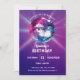 Este convite divertido e colorido é perfeito para celebrar uma Festa de aniversário com um tema de discoteca. Ele apresenta uma bola de disco no centro em um fundo de luzes festivas. As letras têm um estilo retrô. Este convite para o groovy irá dar o tom para um evento divertido, cheio de música e dança.