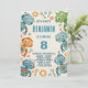 Passem para a diversão de aniversário com este convite para robôs divertidos projetado apenas para crianças! Apresentando oito robôs coloridos no estilo de desenho animado a espreitar de cada borda, esta placa vertical de 5 x 7 polegadas combina texturas de cor aquosa com detalhes mecânicos divertidos, como engrenagens, chaves e parafusos. O centro espaçoso é perfeito para adicionar o nome, a idade e todos os detalhes da festa do seu filho.
