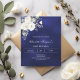 Para uma festa de inverno elegante. Um fundo azul marinho, incolor, decorado com flores brancas, rosas. Personalize e adicione seu nome e detalhes. 1 folha = 1 convite impresso de borda a borda.