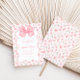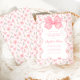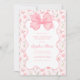 Convite do ano 2010 com um arco de coquete rosa e uma fonte elegante, complementado por um fundo de wallpaper vintage com listras, rosas e borboletas.