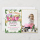 Rapariga Safari Convite de Aniversário com Dinossauro, Folhas Tropicais e Foto Personalizada.