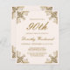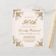 Este elegante convite de aniversário inspirado na vintage apresenta o texto em um script de cor dourada e fontes serif, enquadrado por motivos decorativos de ouro de ornamentado em todos os quatro cantos em um fundo rosa-pincelado. Os motivos de canto são repetidos no reverso.