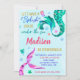 Convite de aniversário da Sereia... sob o convite para a menina Pequena convite de festas de Sereia. Este convite de aniversário da Sereia é uma forma excelente de anunciar sob a festa de aniversário do mar! Este convite brilhante e colorido apresenta caudas roxas e aquas da Sereia, pequenas águas-vivas, conchas marinhas e um casal de estrelas. Você pode personalizar facilmente todos os detalhes da parte com o menu de personalização.