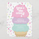 Aqui está o Scoop! Sorvete e aspersores convites de aniversário com alças de sorvete rosa, roxo e turquesa e aspersores arco-íris.