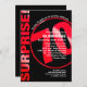 Este brilhante e divertido convite de aniversário vai deixar seus convidados saberem a parte mais importante; é uma surpresa! Vermelho brilhante em preto com um gigante 70 com sua redação personalizada para um convite de aniversário surpresa vencedor. As costas lembram-nos de shhh!