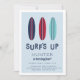 Convites de aniversário de verão bonitos para o seu surf temático ou de beachside, apresentam um trio de ilustrações vintage surfboard no marinho, vermelho e aqua. "Surf" aparece em letras retrorreflectoras, com seus detalhes de festa de aniversário embaixo.