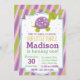 Convite de Aniversário para Tartaruga com Stripe (roxo)