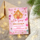 Convite de aniversário para uma casa de pão rosa