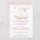 Este belo convite para chás de fraldas apresenta um coelho com verde e falso alumínio de ouro confetti.