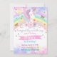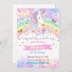 Convidado de aniversário para garotas, unicórnio, arco-íris, estrelas, brilho dourado.