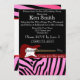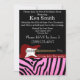 Convidado de aniversário muito divertido, num presente de amigos. Este cartão impresso de zebra cor-de-rosa nº 18 fará de qualquer Aniversário o melhor a lembrar, com o convite preto e rosa. Violão elétrico vermelho e uma faixa vermelha através. Use nosso modelo fácil para personalizar com os detalhes de sua festa.