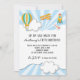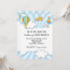 Convite com coisas voadoras: balão de ar quente, biplano, foguete, etc para festa de aniversário de criança.