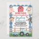 Xadrez Azul E Fazenda de Trator Aniversário Convite fazenda Fita-de-gato Convite para o aniversário de meninos com alguns animais de exploração, celeiro vermelho, trator azul e padrão e folhagem de xadrez azul. Ideal para o primeiro, segundo ou terceiro aniversário de um menino.