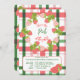 Celebre o seu aniversário com um encanto doce usando este convite temático de morango com a deliciosa frase "Ela é a escolha do patch!" A design frontal mostra uma coroa de morangos vermelhos brilhantes moldando o texto, todos colocados contra um fundo rosa alegre e xadrez verde — uma combinação perfeita do estilo de garotinha típico e bonito do país, com uma caixa para suas informações personalizáveis sobre a festa. Ideal para um piquenique de morango, festa de jardim ou celebração de verão. Personalize a frente com os detalhes da sua festa, e até adicione uma foto com nome e idade no verso para um toque especial que os seus convidados irão adorar. Uma forma doce de morango de convidar amigos e família para um cheio de alegria, risos e sol!