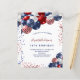 Um fundo branco chic. Decorado com balões patrióticos coloridos em azul vermelho e branco. Personalize e adicione um nome e detalhes da parte. O nome é escrito com um script de estilo manuscrito.