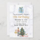 Convite de aniversário de inverno com fundo de mármore e personagens clássicos de Nutcracker.