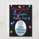 Belo Convite criado para uma Festa de aniversário. Todo o texto pode ser editado de acordo com as suas necessidades. A frente do cartão tem um fundo colorido preto, uma variedade de balões coloridos, texto amarelo e um espaço para colocar a foto da pessoa de aniversário. Edite o texto! Não se esqueça.