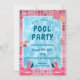 Crie um impacto com este convite de festa de piscina personalizado, divertido e vibrante, perfeito para celebrar aniversários sob o sol! Com uma borda de azulejos rosa elegante, fundo de água de piscina, flamingos flutuantes, conchas tropicais e copos de coquetel, este convite define o tom para uma festa de verão animada.