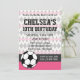 Estilo desportivo, bonito a rosa! Celebre o dia especial de sua super estrela com esta suite de aniversário de tema de futebol! Versátil também para reuniões de equipes e eventos. Fácil personalização! Basta substituir o texto modelo com seus próprios detalhes. Clique no botão "Personalizar" para alterar as fontes, adicionar texto ou mover e redimensionar o texto conforme necessário. Bônus nas costas! Este convite apresenta uma design especial no verso para servir como uma fotografia de manutenção para a família e os amigos. Basta substituir a foto de estoque pela sua própria imagem de alta resolução e depois escalá-la ou movê-la para a posição. Se você preferir um fundo branco de vazio em vez de uma fotografia, simplesmente exclua a camada de fotos (o texto pode ser adicionado em seu lugar, se desejar).