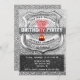 Um design excelente para uma festa de aniversário de policial. Possui um crachá prateado e uma falsa luz vermelha da polícia.