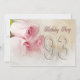 Uma bela imagem delicada de um rosa em tons cor-de-rosa suave. Um convite de aniversário encantador. Alterar a parte de trás para os detalhes do seu próprio partido