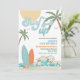 Crie ondas com este convite de aniversário divertido de praia de surf! Com ondas do oceano pastel, palmeiras, pranchas de surf e um sol tropical, este design alegre define o tom perfeito para uma celebração à beira-mar. Ideal para aniversários de crianças, festas de verão ou eventos temáticos tropicais, combina estilo divertido com um clima costeiro vibrante. Personalize com os detalhes da sua festa e prepare-se para surfar na onda de emoção!